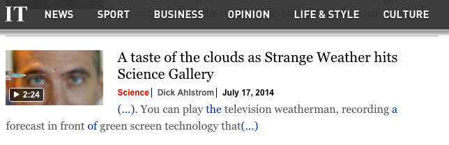 The free exhibition definitely takes a fresh look. You can place a bet to see who can provide a better weather forecast eight days hence - the public or the forecasters at Met Éireann. Or look at some of the mad ideas being pursued by scientists to control the weather.
